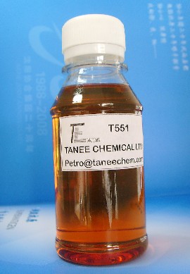T551质量与瑞士CIBAGEIGY公司REOMENT-38相当,它以配价键在金属表面形成惰性膜或与金属离子形成螯合物,从而抑制金属对氧化反应的催化加速作用。具有良好的抗氧化性能。该产品质量稳定,以微量(0.03-0.1%)同T501复合显示优异的抗氧增效作用,并降低T501用量,它被广泛应用于汽轮机油、油膜轴承油、工业齿轮油、变压器油及循环油,但不能与ZDDP复合使用,以防发生沉淀。 理化性质